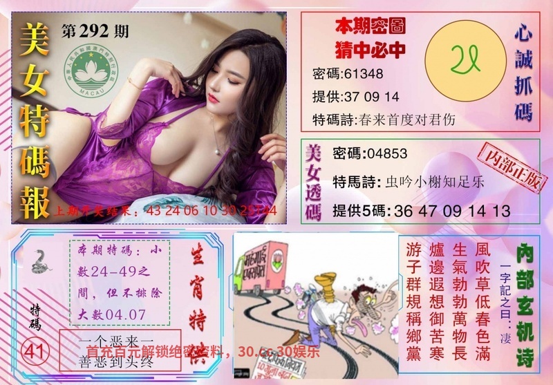 | 297期:闲情暗语:【更新】《發00》 解释:更新中 六肖:更新中 |